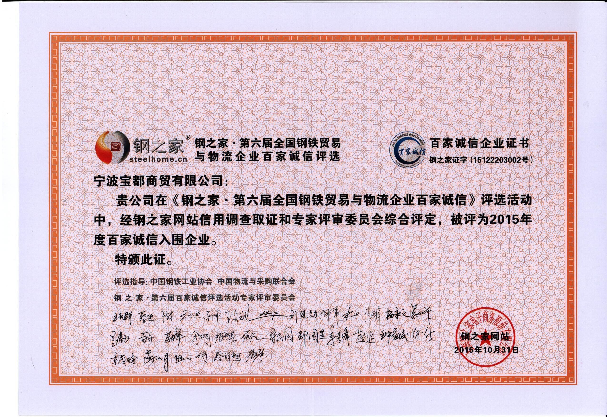 寧波寶都商貿(mào)有限公司是一家從事國(guó)內(nèi)建筑鋼材、鋼坯、工業(yè)用材為主,具有一定規(guī)模和實(shí)力的鋼材貿(mào)易企業(yè)。公司成立于2009年,注冊(cè)資本5000萬元人民幣,年銷量100萬噸以上,年銷售額達(dá)30億元。現(xiàn)為中天鋼鐵集團(tuán)有限公司最大經(jīng)銷商。